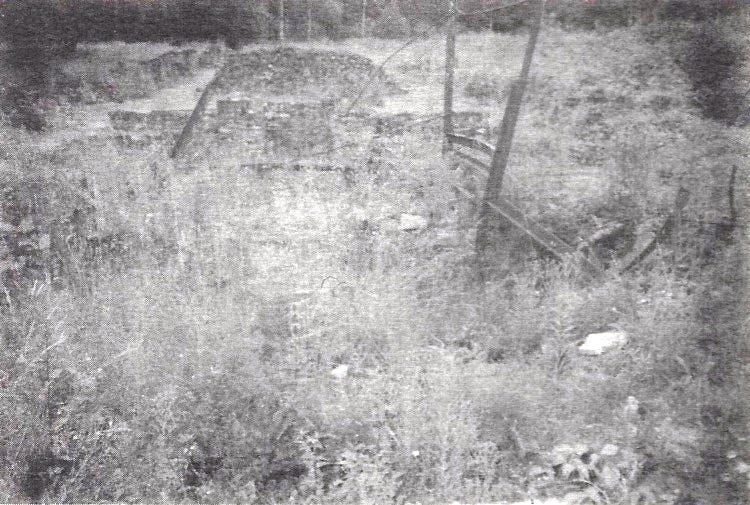 As for the Birkenau camp, it contains the remains of four crematories wherein allegedly the extermination of most of the Jews transported to Auschwitz was carried out. These crematories were destroyed by the Germans shortly before their evacuation from the camps. All that is preserved of Crematories II and III are the ruins of the buildings and the half-buried remains of the mortuaries (see Figure 4).[8] The scanty remains of Crematory IV are completely covered by vegetation, and all that is left of Crematory V is the cement floor, a few traces of the interior brick partition walls and a jumble of scrap iron in place of what was once the ovens (see Figure 5).