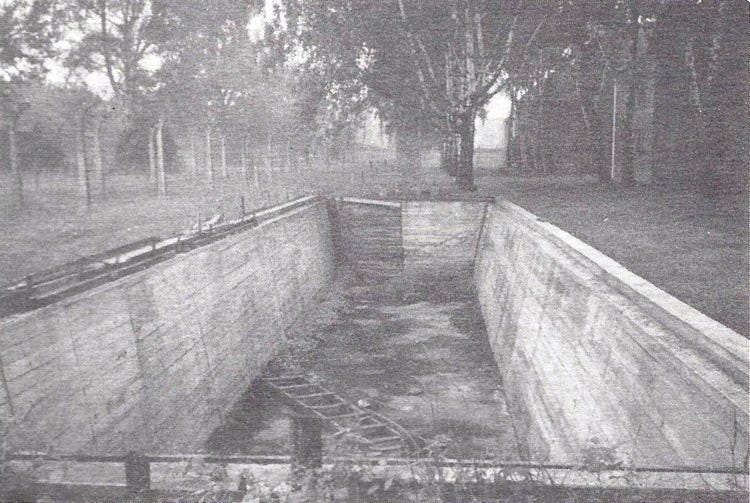 There was also a swimming pool within the Auschwitz camp area for the use of the internees (see Figure 3). This swimming pool is situated on the south side of the camp and outside the tour route established by the Museum authorities for visitors. The reason for this, in my opinion, is that the presence of a recreation installation doesn’t fit in very well with the image they attempt to give Auschwitz as a “death camp.”