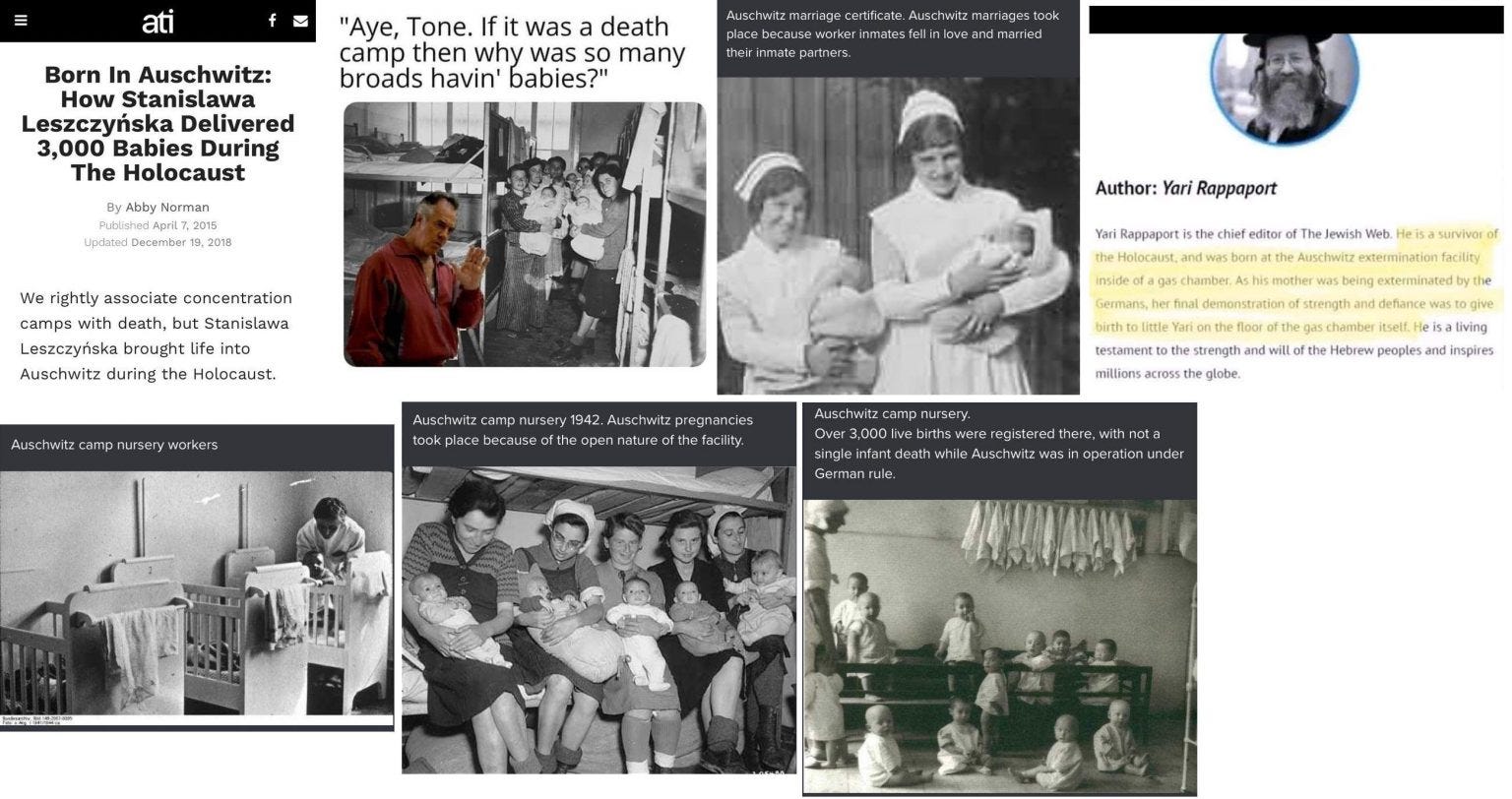 In contrast Jewish babies and children were well cared for in Auschwitz until saturation bombing destroyed Germany.