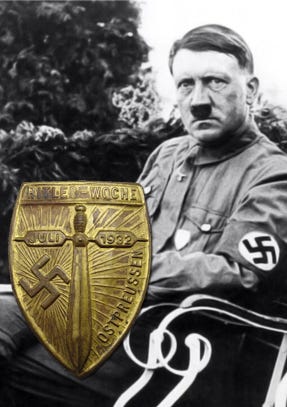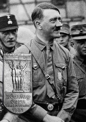 Tinnies are small badges, often made of cheap metal, like tin (hence their name), which were widely produced for almost each event that took place during the Third Reich, and were sold to the public as a souvenir for their participation of the event. There are thousands of tinnies, and they are now a major part of Third Reich collectibles.